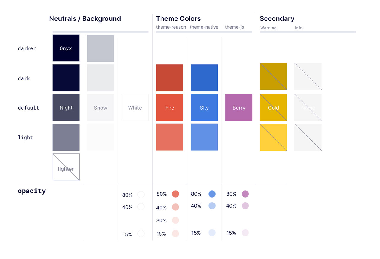 Current state of the reasonml.org color palette